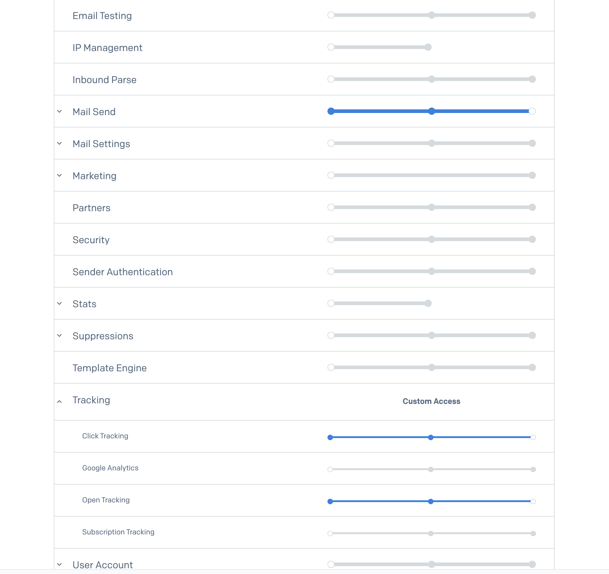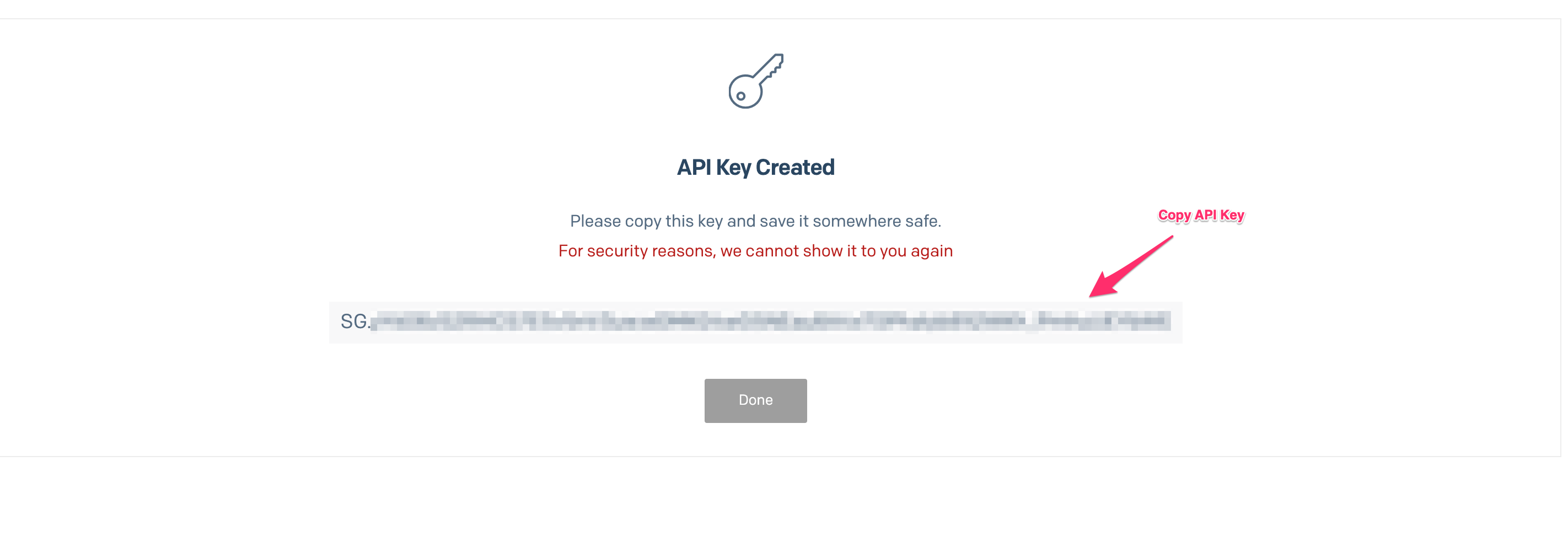Visit the API Keys page in SendGrid. Click on the Create API Key button. Ensure you have provided Full Access for