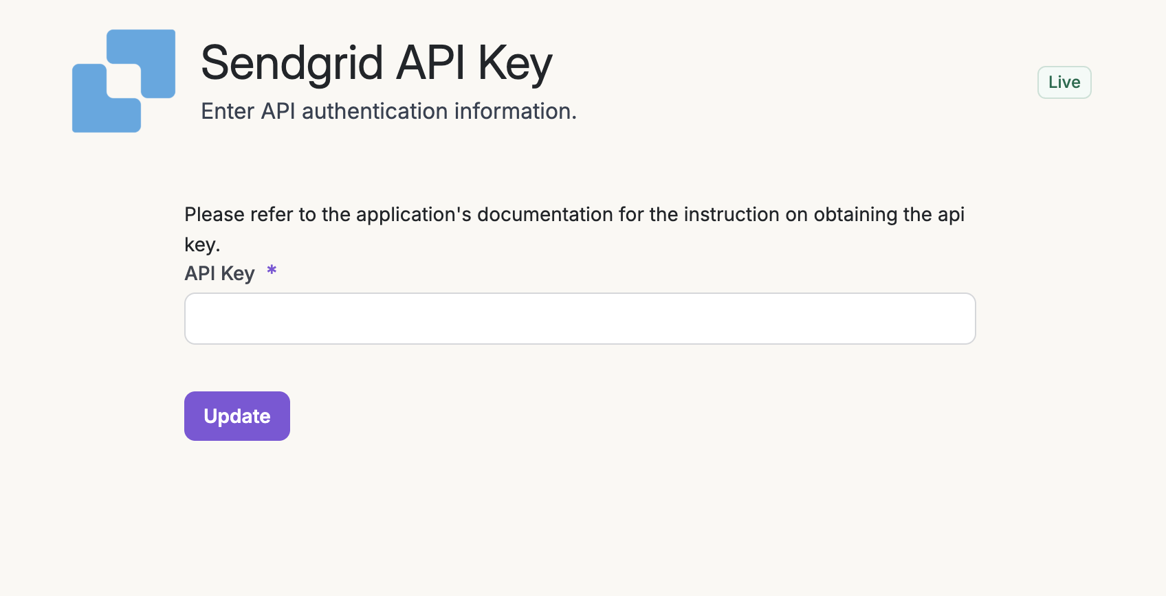 Visit the Integrations tab in Maple. Find the SendGrid integration and click on Install. Paste the API copied from Step 3, then click Update.