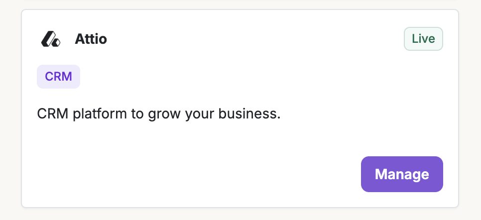 To get started with the Attio integration, select Integrations > Available Apps > Attio