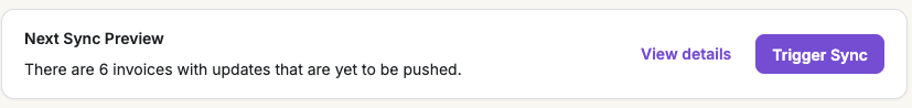 Push a manual sync in the Matches or Syncs tabs of your Xero integration. You can also view a summary of the invoices that will be pushed in the next sync (automatic or manual).