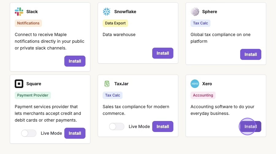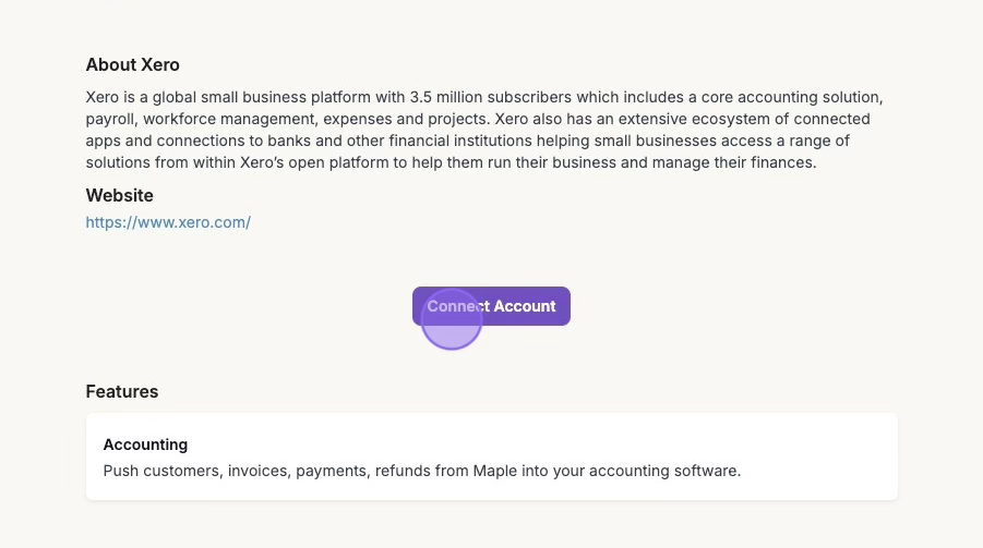 Maple’s Xero integration simplifies the accounting process by automatically syncing invoices, payments, and related data from your Maple account to Xero.