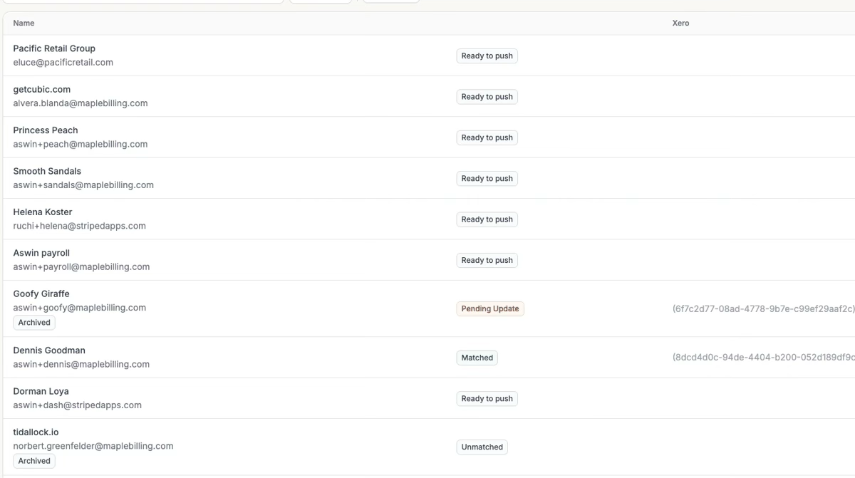 Once your Xero account is connected, you can map your customers in the settings of the Xero card in Maple's Integrations tab.