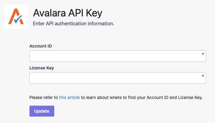 Software License Key: Available under Avalara Settings. For more instructions, please follow this knowledge base article