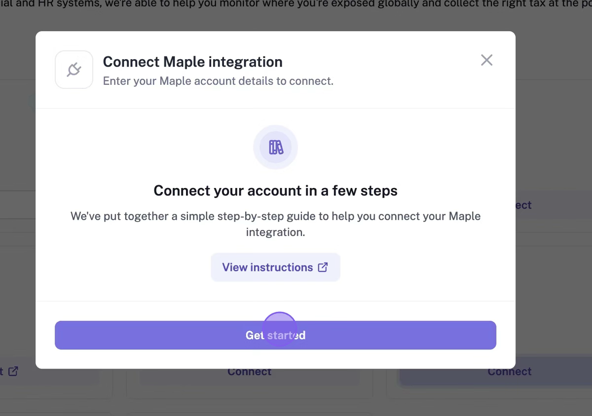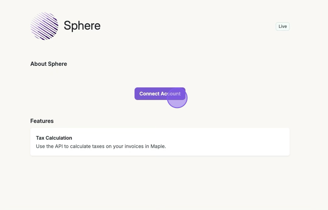 In another window, go to Integrations Page in Sphere and find Maple in the Integrations list. Click Connect.