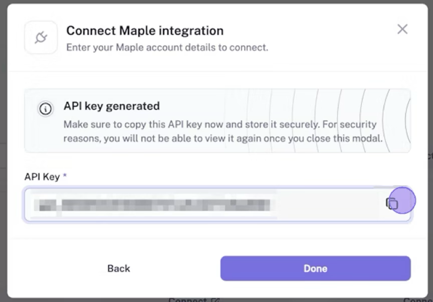 Click "Generate API Key". Copy it, as you will need to paste this in Maple.
