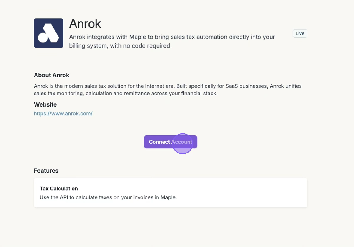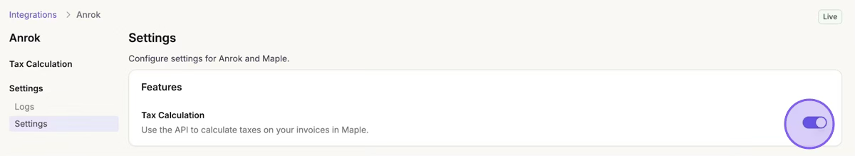 Under the Anrok card settings in Maple, toggle the Tax Calculation feature on.