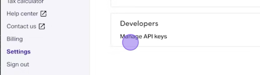 In a separate window, in Anrok, click Settings > Developers > Manage API Keys.