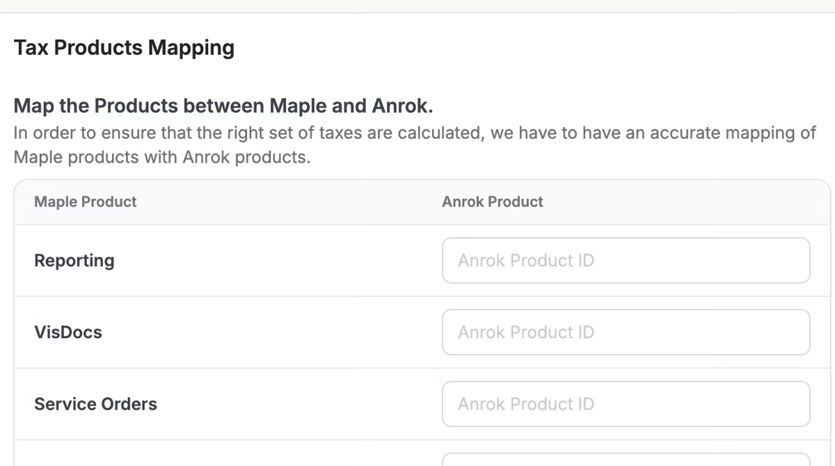 In order to provide the correct tax code when we submit transactions to Anrok, we allow mapping of Maple products to Anrok products.