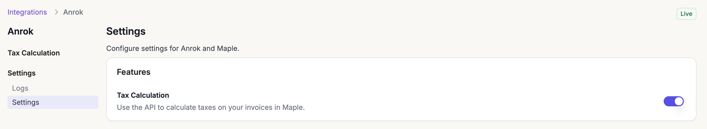 This guide provides step-by-step instructions on generating an API key in Maple, linking it to Anrok for a secure integration. It also covers configuring the Anrok Tax API within Maple to ensure accurate tax calculations.