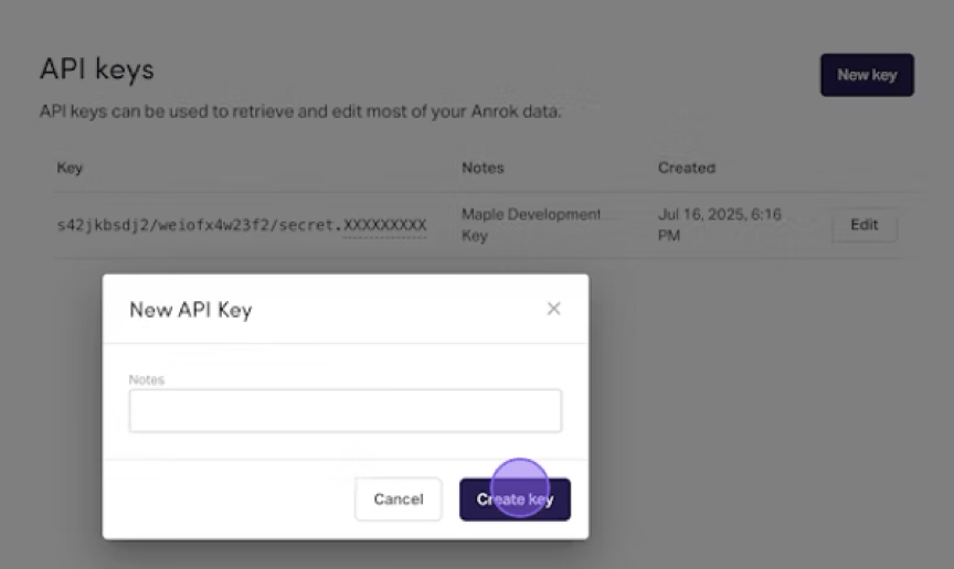 Paste Anrokās API Key copied from the previous step into Maple. Click Update.