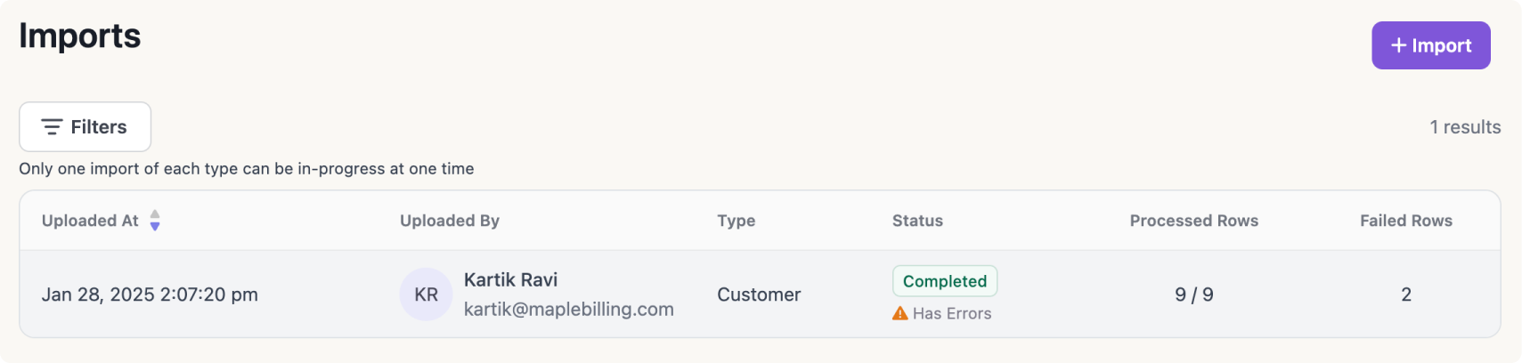 Maple also allows you to import Customer and Event data from other sources, like CRMs. To import data into Maple, your upload must be in CSV format.