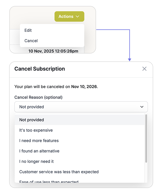 Enable Allow customers to cancel their subscriptions to allow subscription cancellation from the customer portal