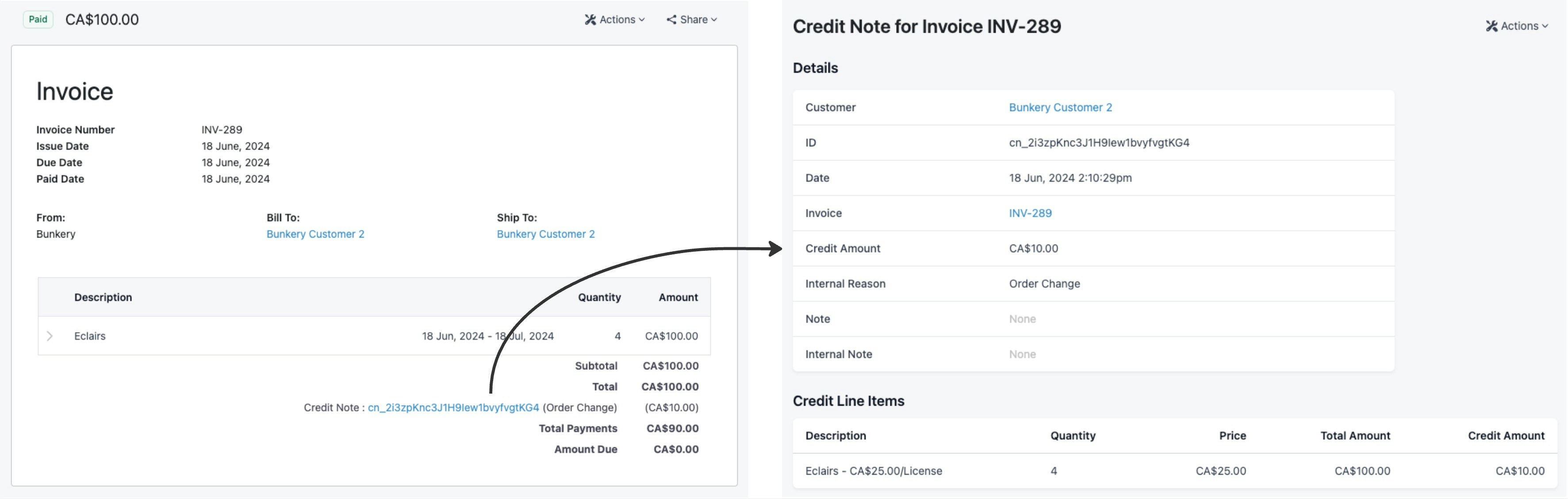 When a credit note is issued, the customer receives an email notification with the Invoice # and the amount credited.
