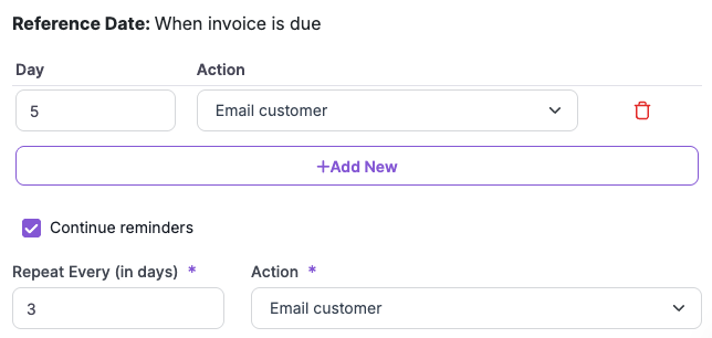 (Example: Email the customer after 5 days, Email the customer every 3 days following)