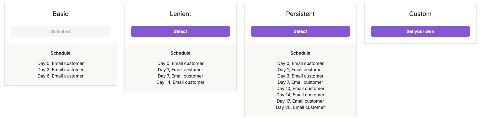 Three default configurations for notifications and reminders can be enabled within Maple: Basic, Lenient, and Persistent. You can also create a custom schedule based on your preference.