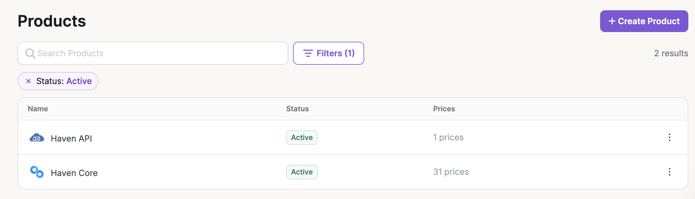 Products represent a service that a customer can buy. Products can have several corresponding product pricing plans.