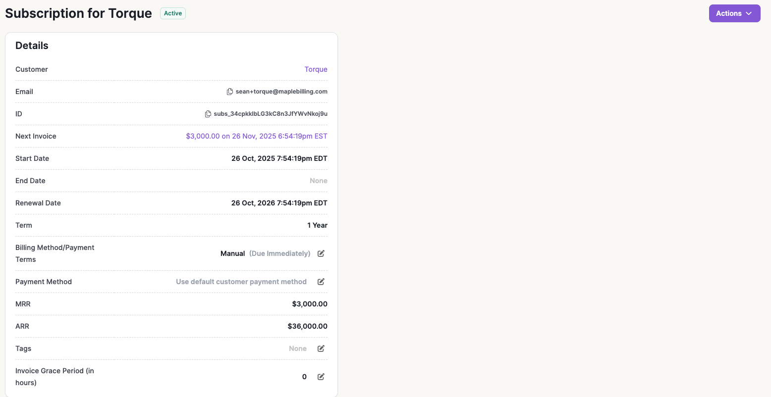 Maple makes it easy to manage your customers, subscriptions, and one-off invoices without any code. Once you understand the Core Concepts, this guide will walk you through creating your first contract with product pricing, managing your subscriptions, and setting up your payment provider to bill invoices.
