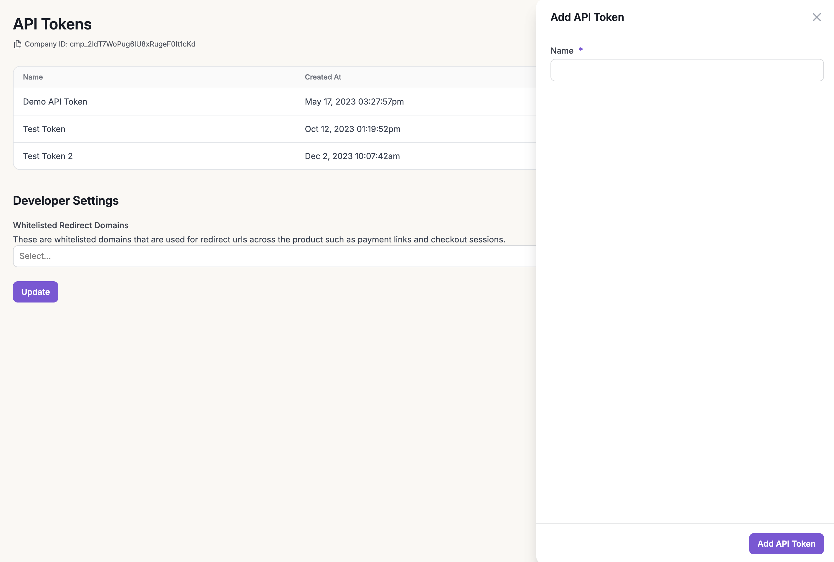 Once created, you cannot retrieve or update the same API token again. Make sure to be save the token in a secure manner