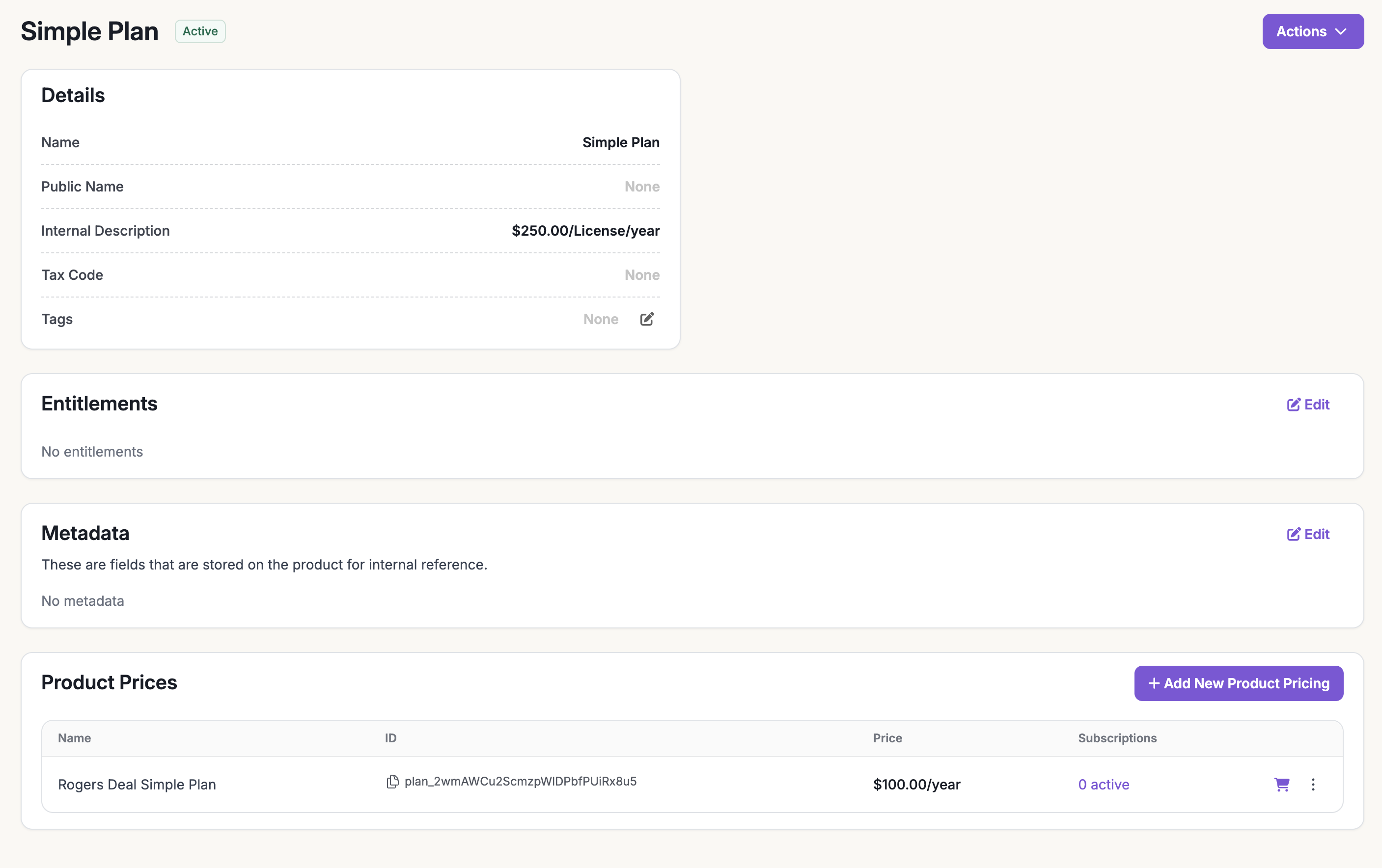 Under the new product, click on ‘Add New Product Pricing’ to create a plan.