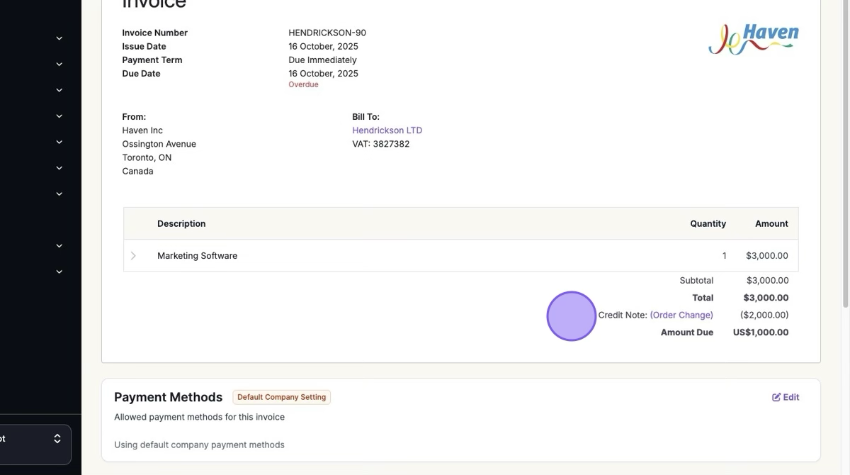 Use Credit Notes to apply discounts or reduce the amount owed on unpaid invoices.