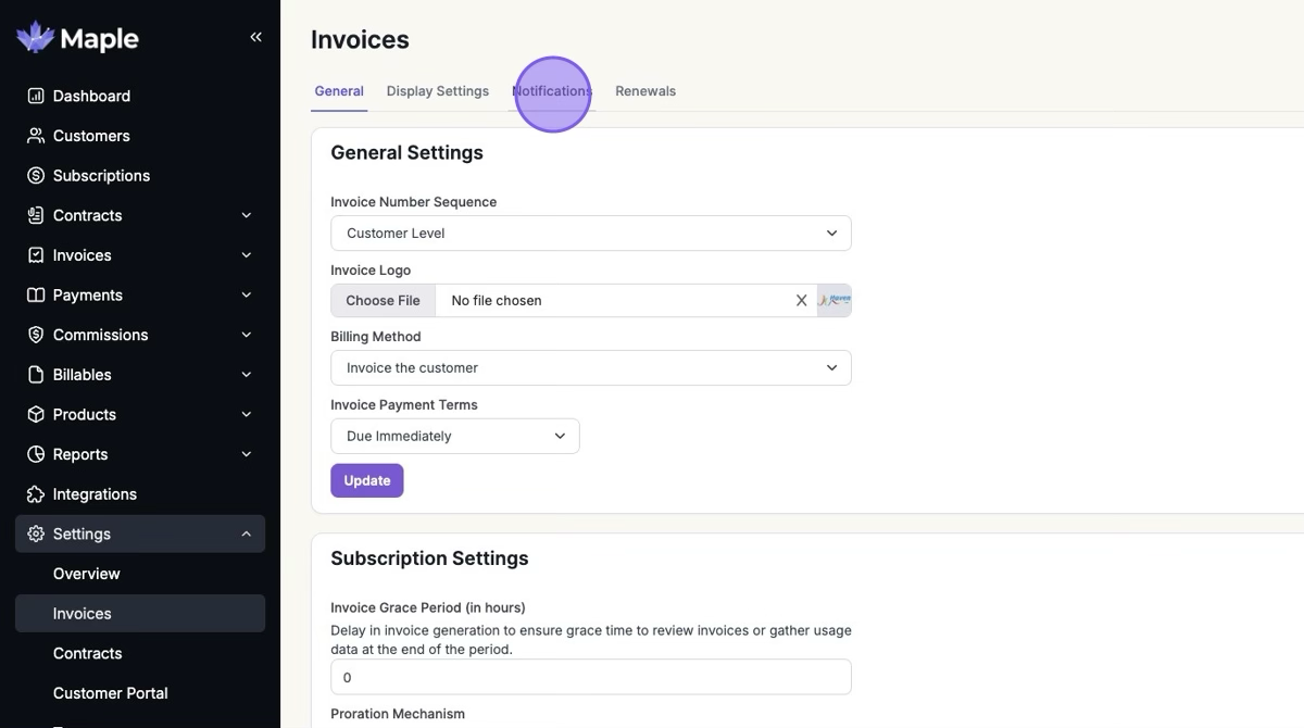 If a payment for one of your customers fails, Maple allows you to continue to retry failed payments for invoices, as well as send out notifications to the customer of failed payment.
