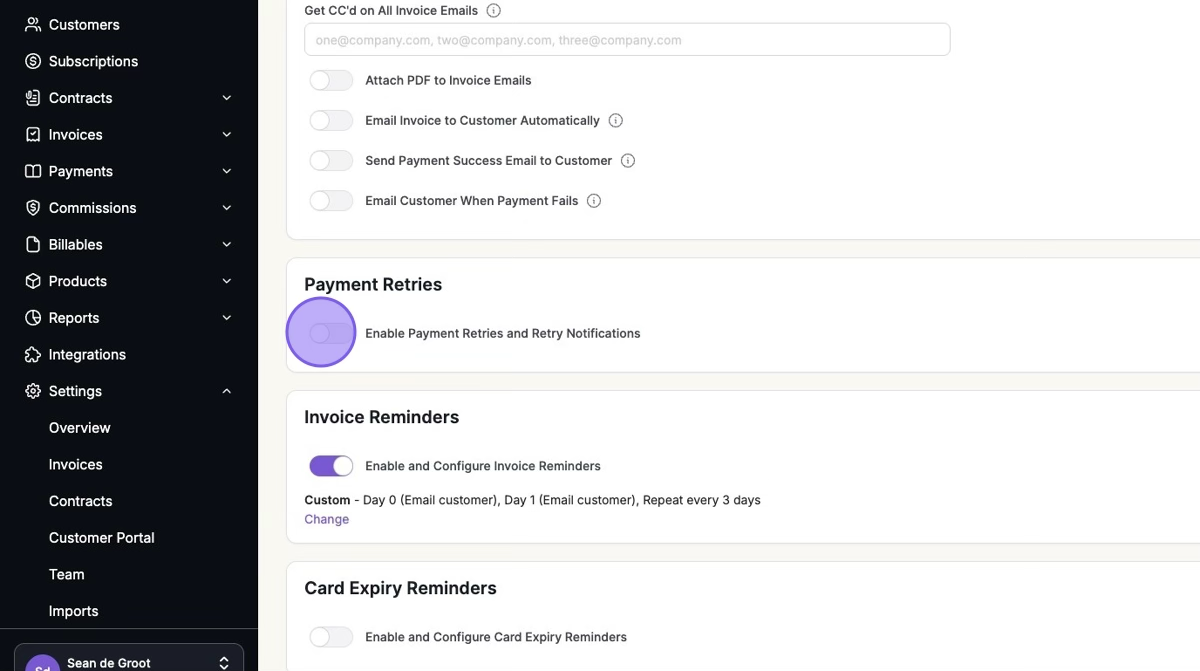 2. Turn "Enable Payment Retries and Retry Notifications" On