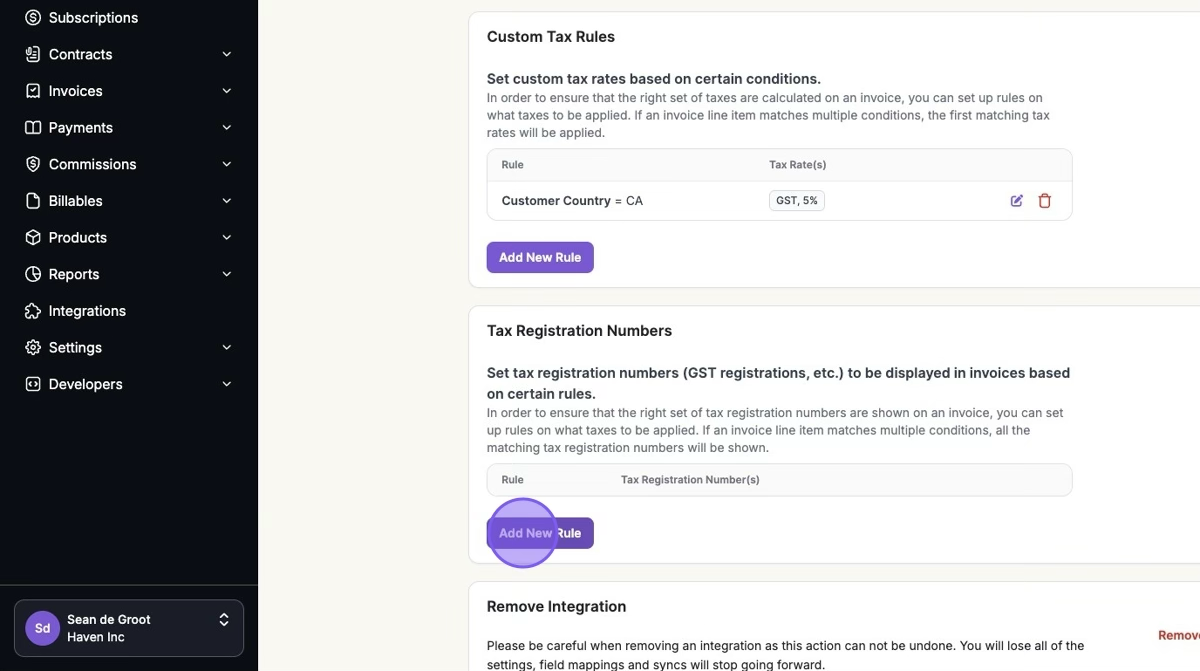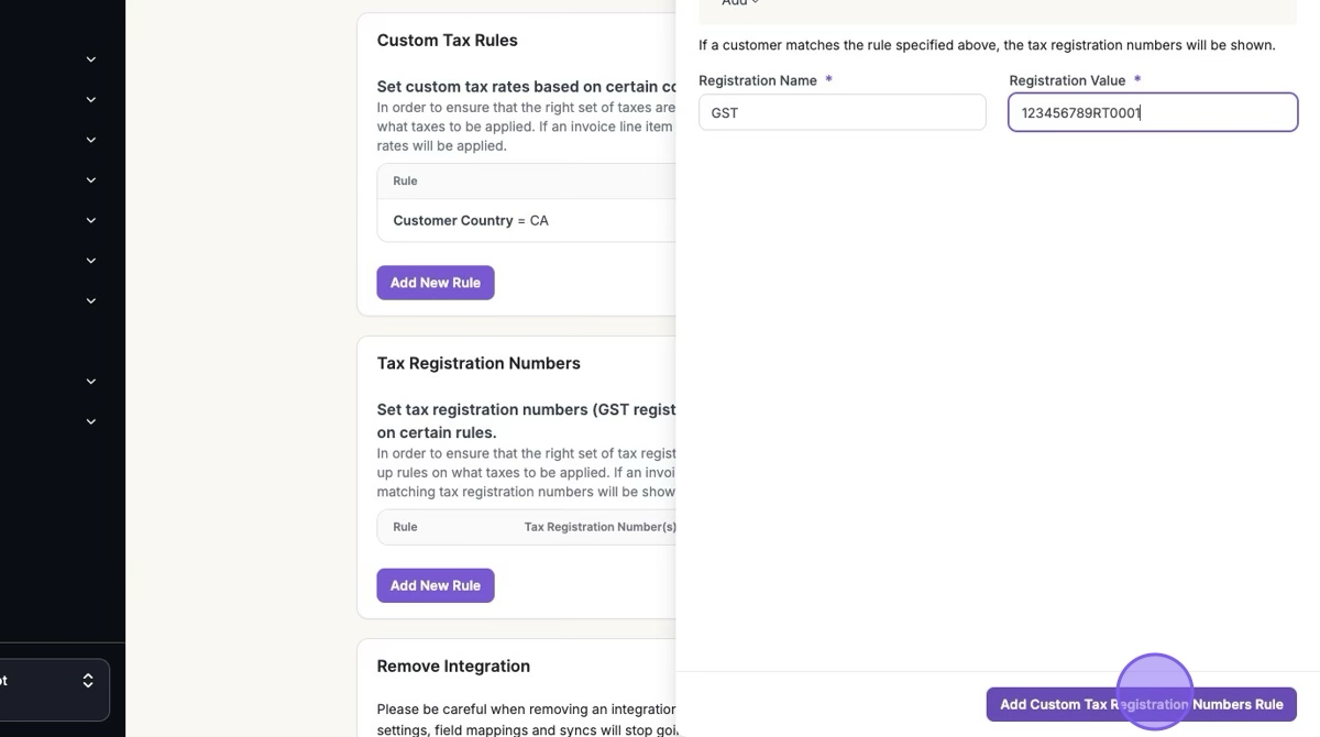 4. Click "Add Custom Tax Registration Numbers Rule"