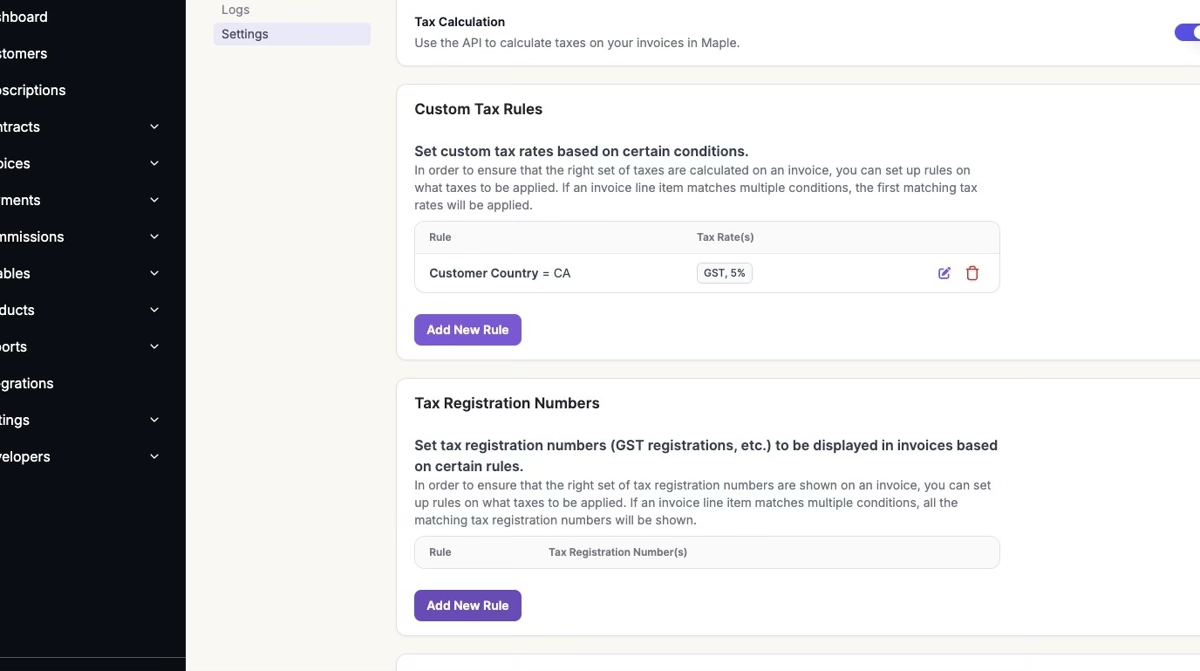 1. Go to Integrations > Manual Tax Calculator > Add New Rule