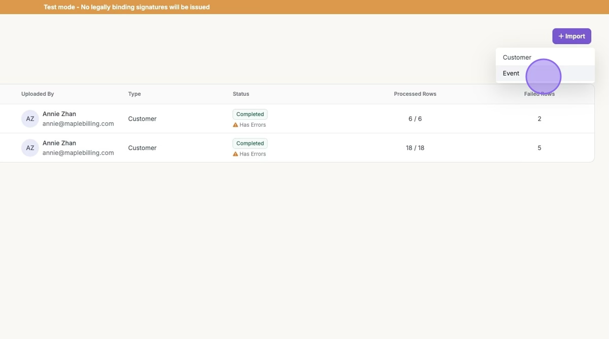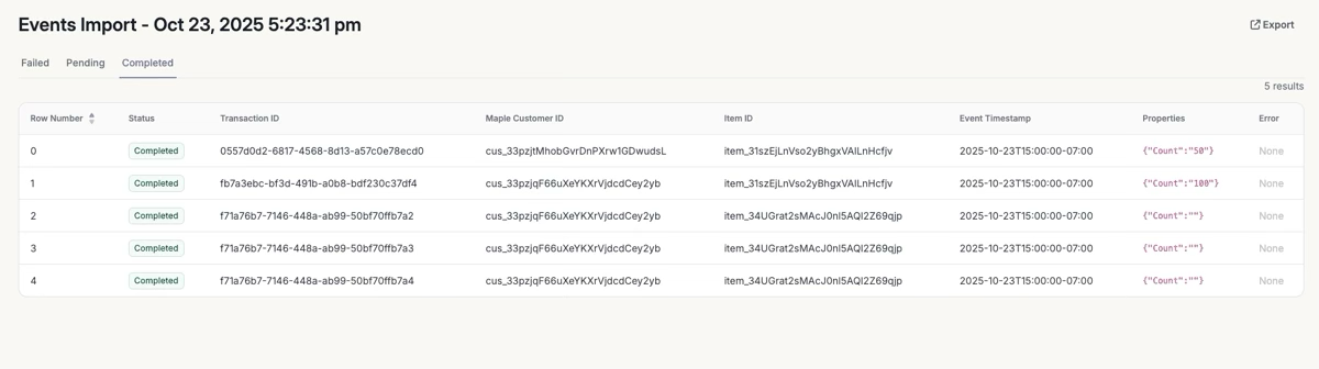 Learn how to import your usage-based billing events with Maple's template.
