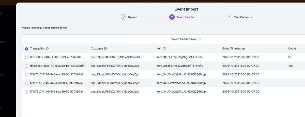 5. Select the Header Row and Click Continue, then Click Submit to Start Your Import