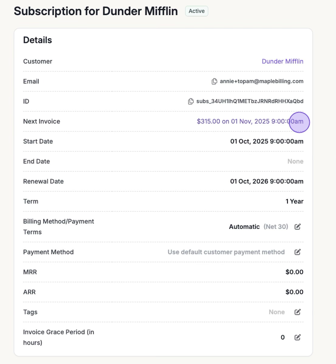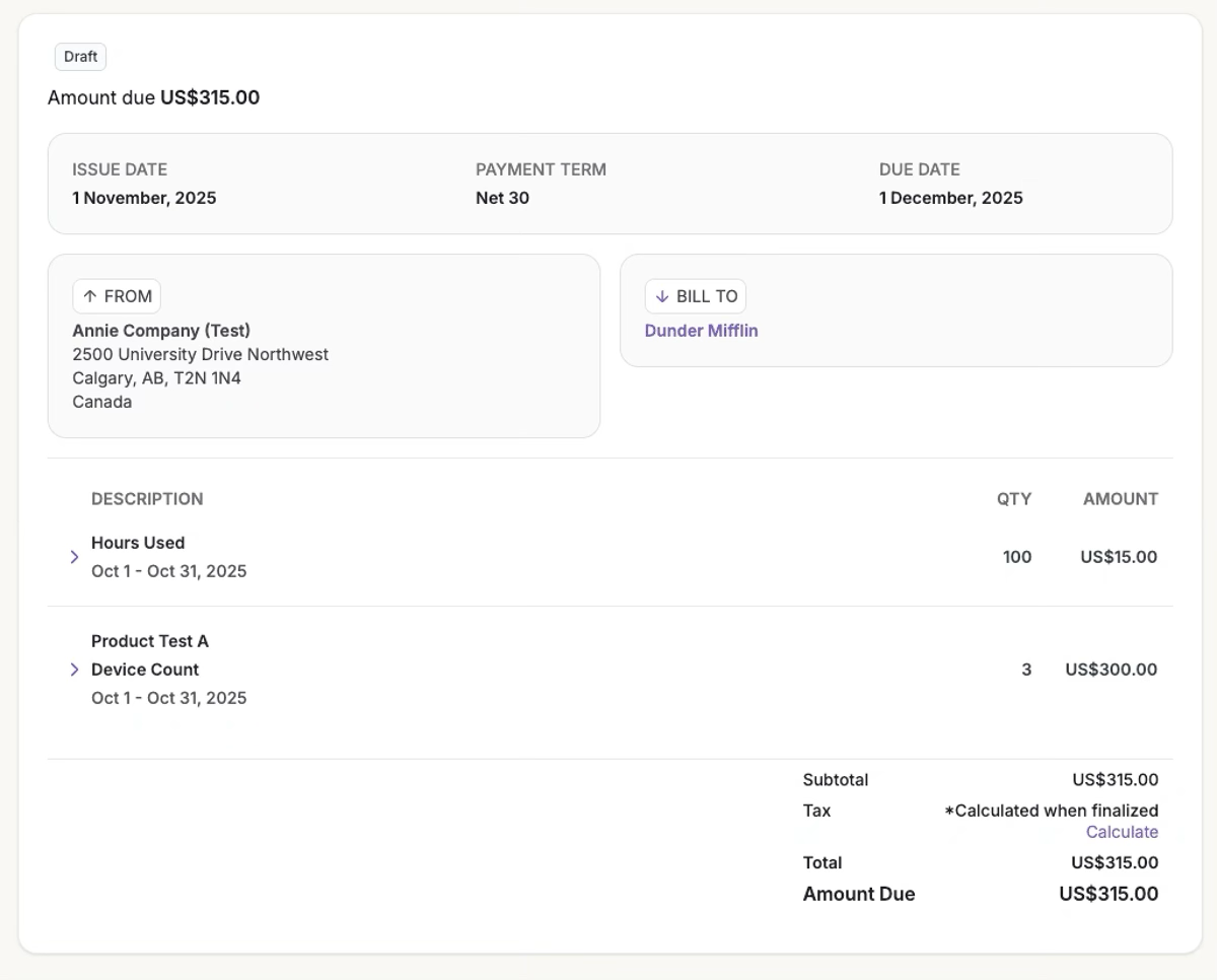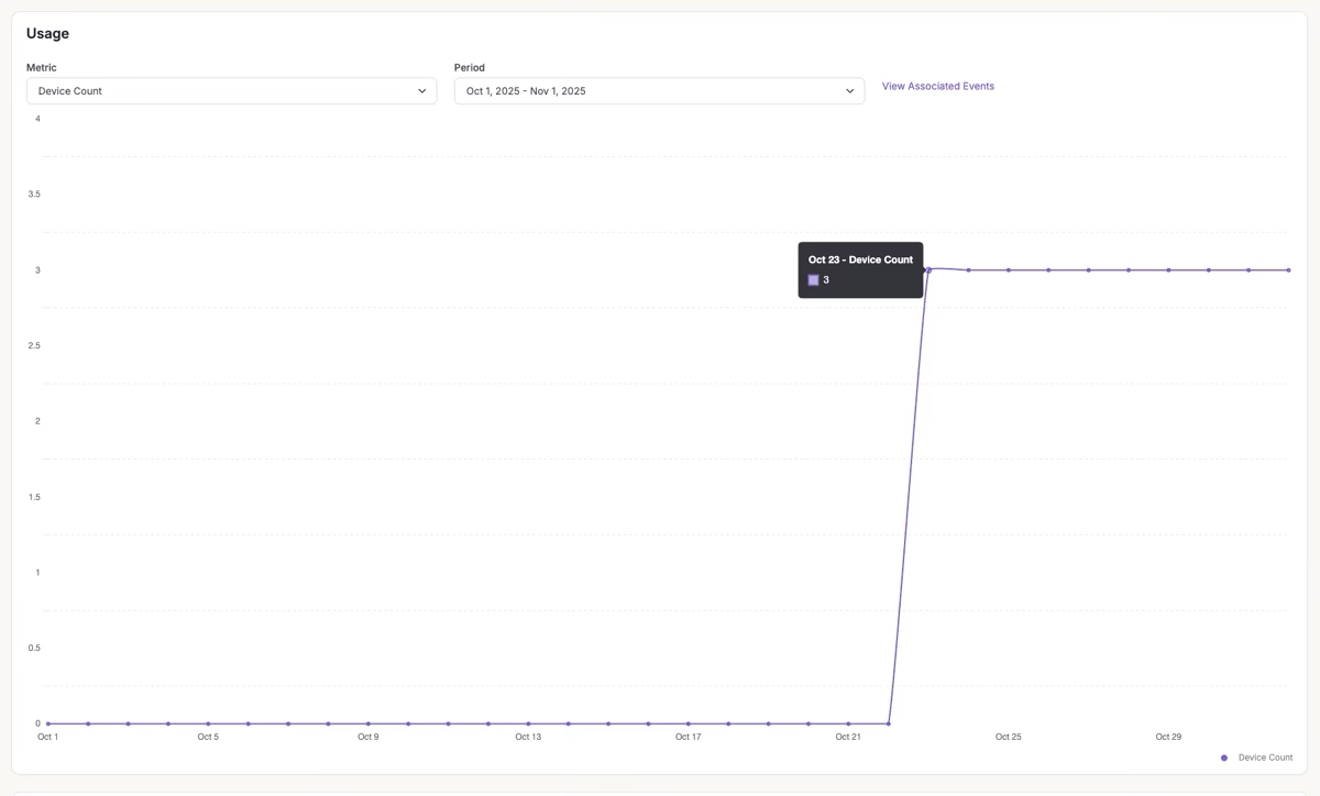 If subscription includes more than one billable metric, click the metric dropdown to toggle between them.