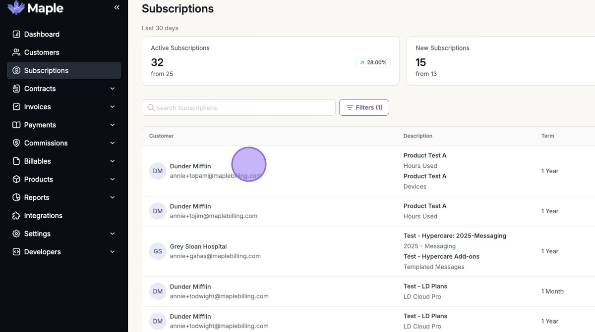 To see your imported usage, navigate to the subscriptions tab, and click on the subscription(s) you imported data for.