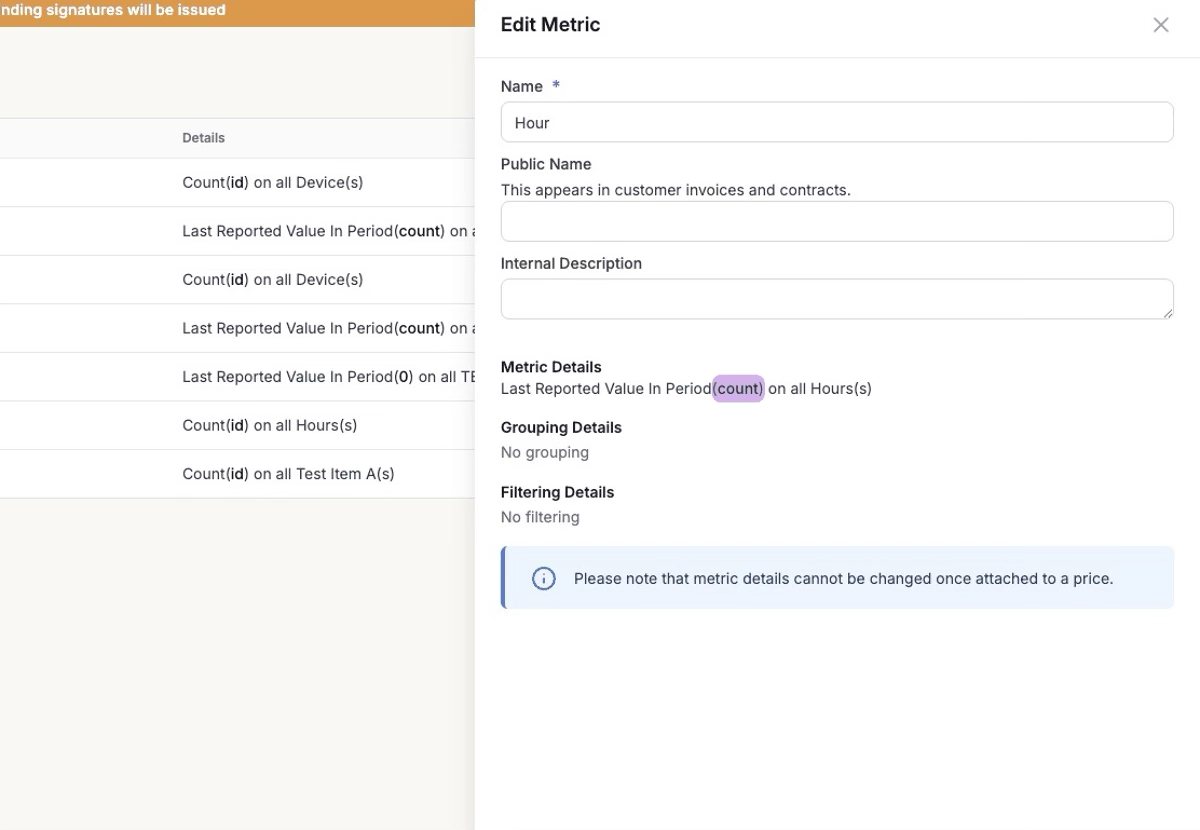 You would have been prompted to enter a property in the creation of a metric for your billable item. In this example, "count" is our property.