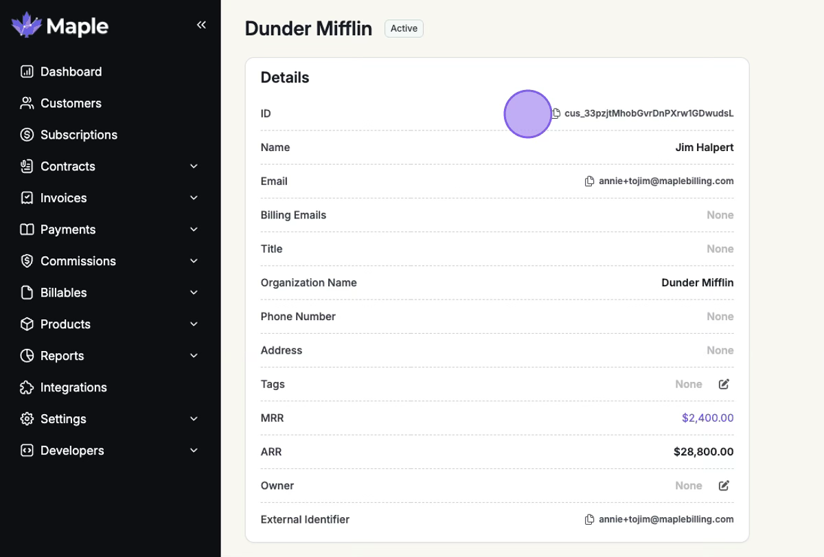 Customer ID: This is the unique ID associated with the customer you are importing events for. This can be located in the customer's profile in Maple.