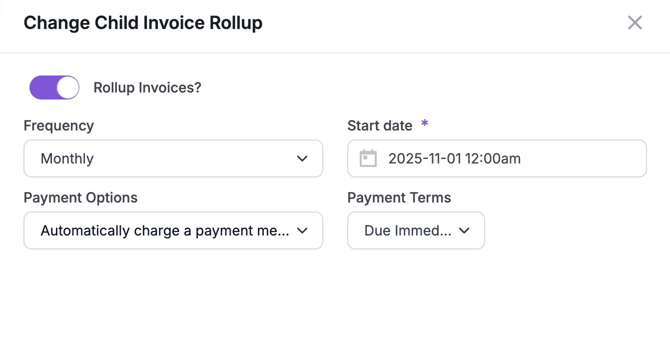4. Turn the "Rollup Invoices" toggle on