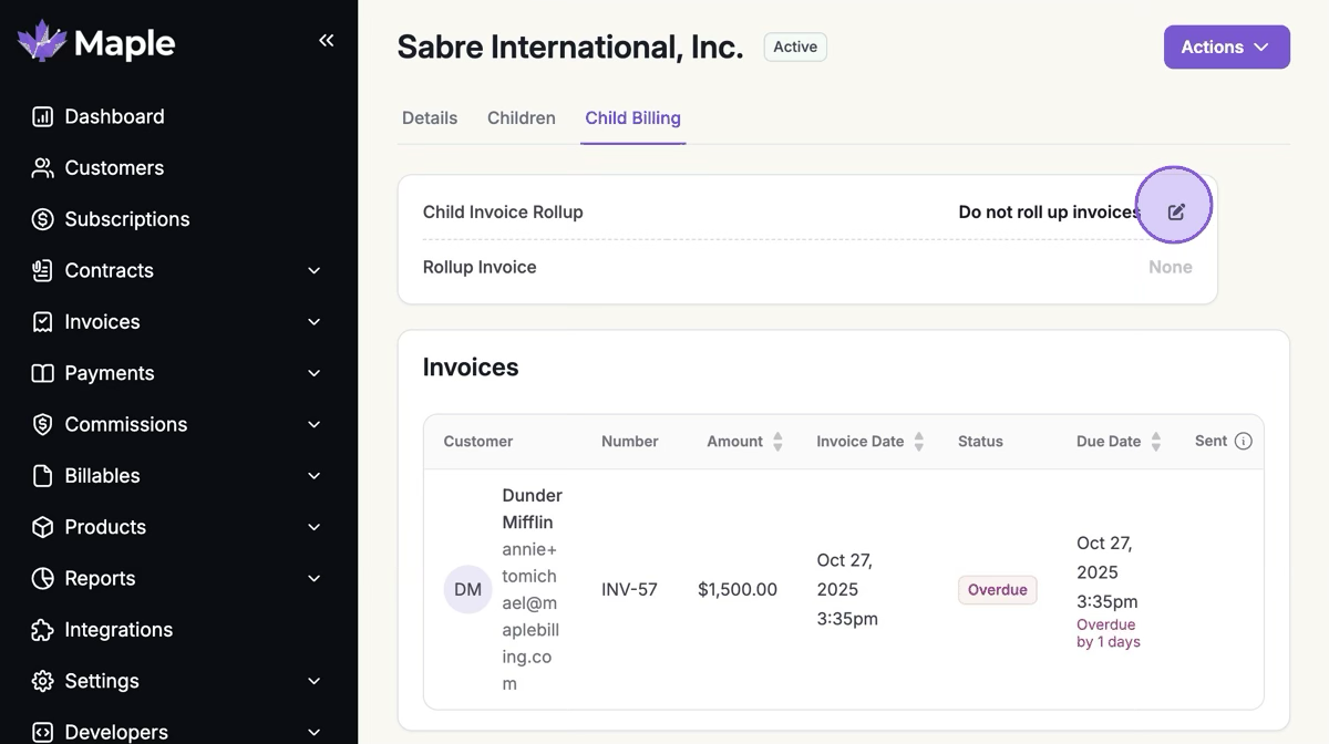3. Click the Edit Icon Next to "Child Invoice Rollup"