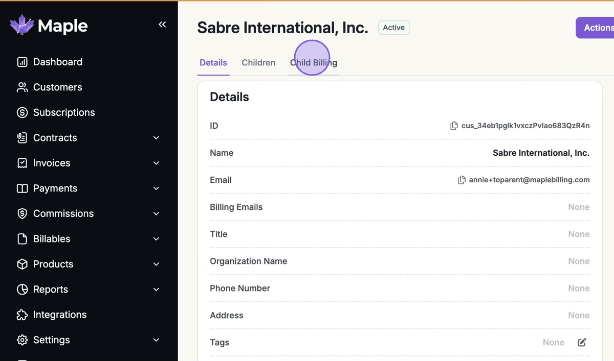 Before turning on rolled up invoices, ensure that you have established a parent-child relationship. Refer to How To: Assign a Parent.