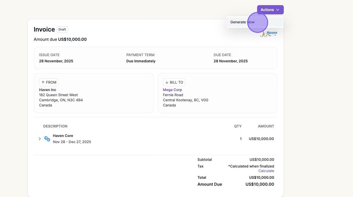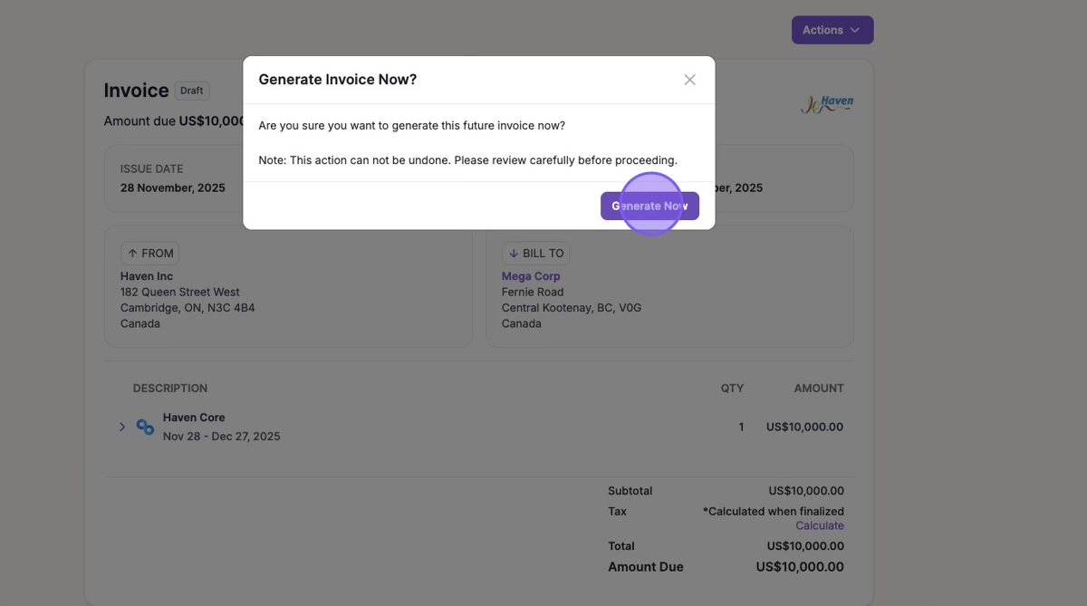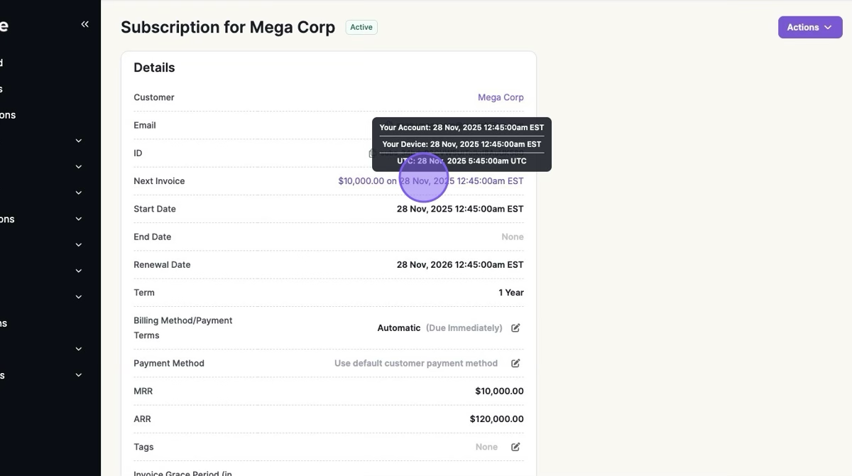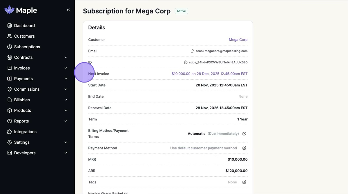 Subscriptions can be set for a future date, where you can view the upcoming invoice. To generate this to incur billing immediately, you can generate the invoice to be sent.