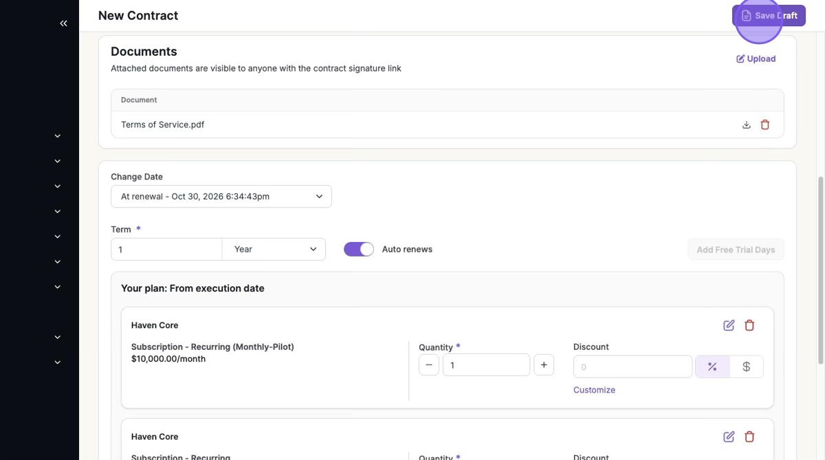 Your Subscription will be scheduled for change or applied immediately, depending on the "Change Date" specified in the contract.