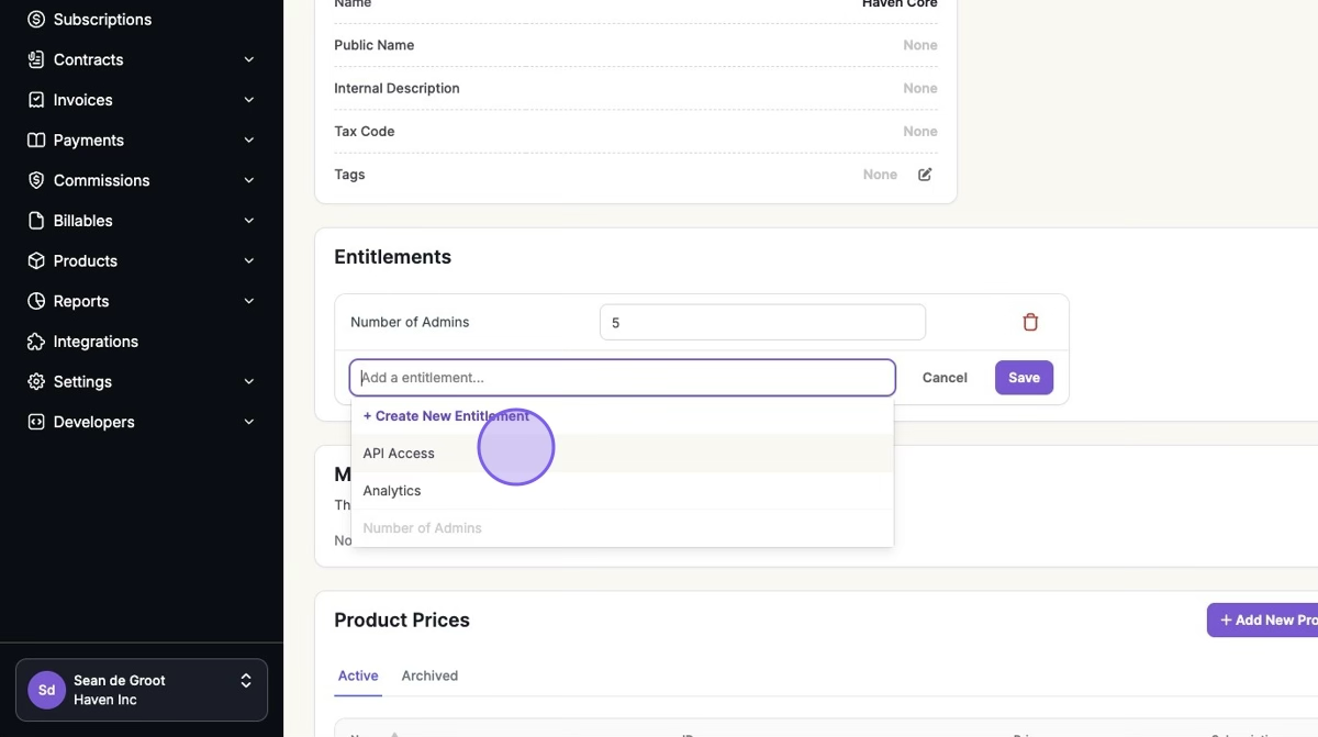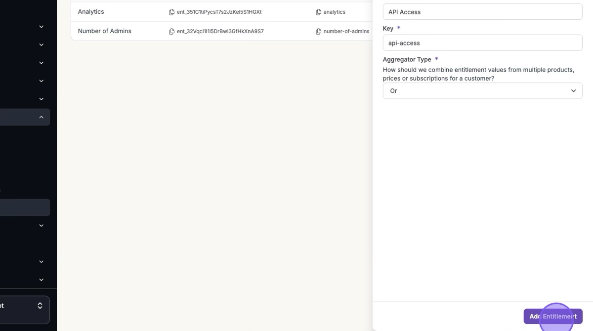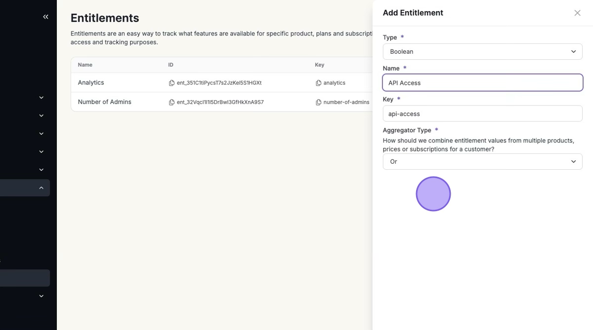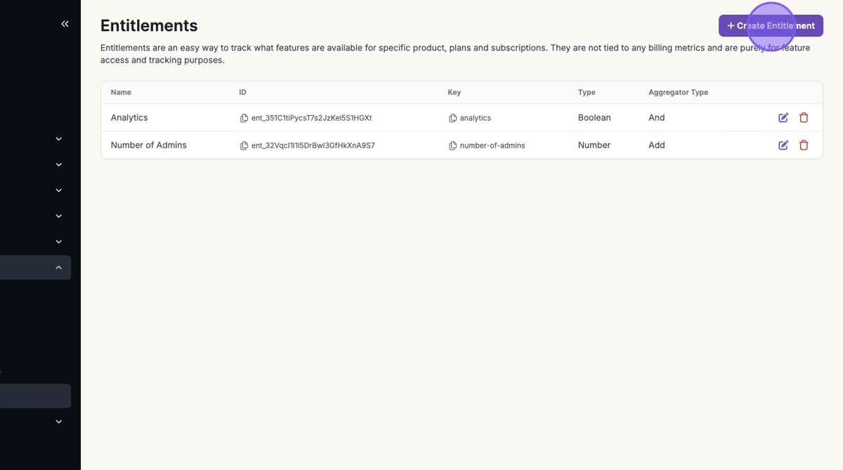 Entitlements are an easy way to track what features are available for specific products, plans and subscriptions. They are not tied to any billing metrics and are purely for feature access and tracking purposes.