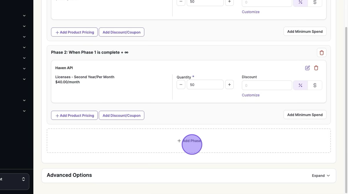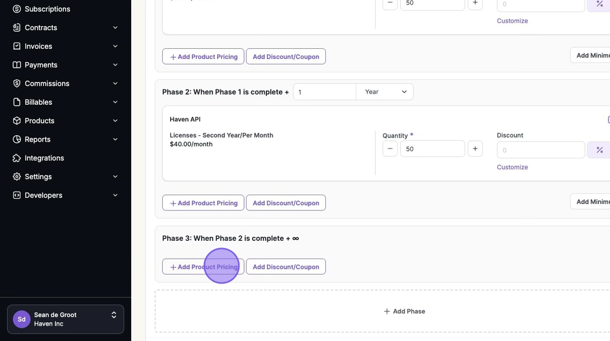 2. Select your First Year's Pricing > Click "Add Phase"