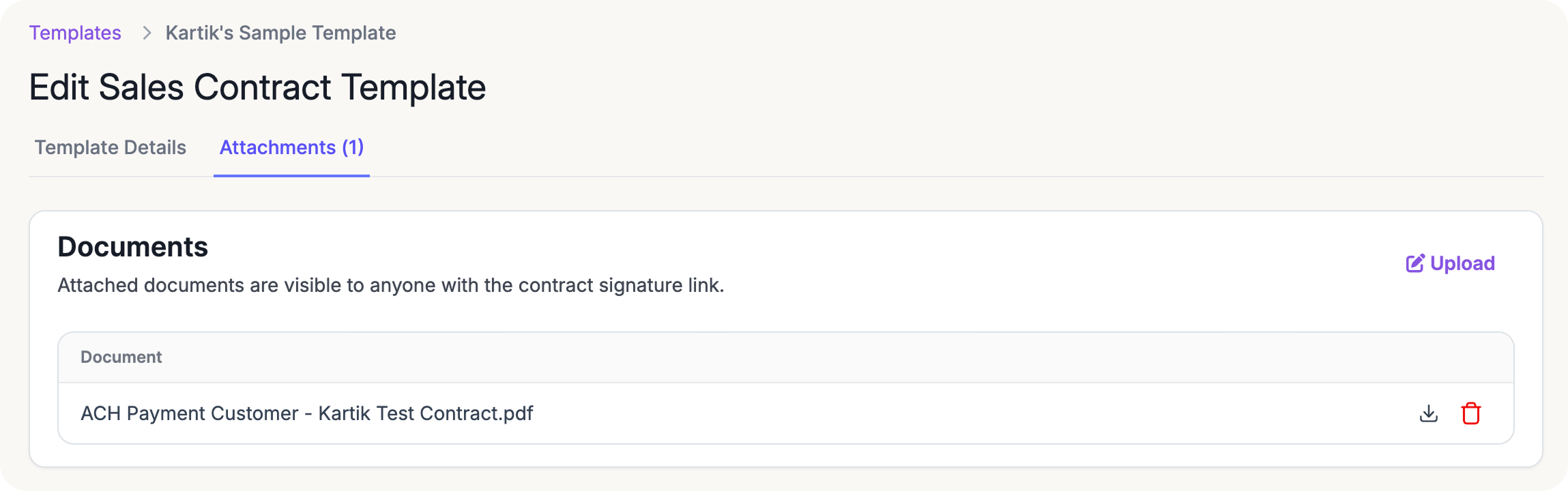Contracts can include attachments that provide additional information. These attachments can be presented in two different ways at the time of signing.