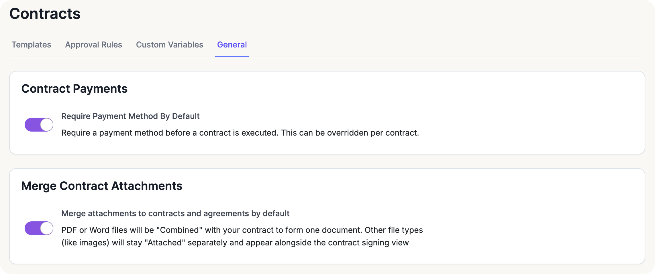 Note: If this setting is disabled, all attachments—regardless of file type—will only be accessible via the attachments sidebar and will not alter the primary contract document.